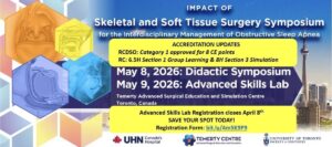 Don’t miss this first-of-its-kind educational initiative in Canada, taking place at the Temerty Advanced Surgical Education and Simulation Centre ln the Michener Institute of Education at UHN in the heart of downtown Toronto, Ontario, Canada on May 8 & 9, 2026. This is Canada’s first Surgical Sleep Medicine training program, maximising hands-on surgical skills training in novel sleep surgery techniques and technologies, while integrating the latest innovations, research, and best practices in the subspecialty. Led by an international academic collaboration and expert faculty and co-developed by sleep surgery leaders across Canada, the United States, and Europe, this program brings together an exceptional interdisciplinary faculty.